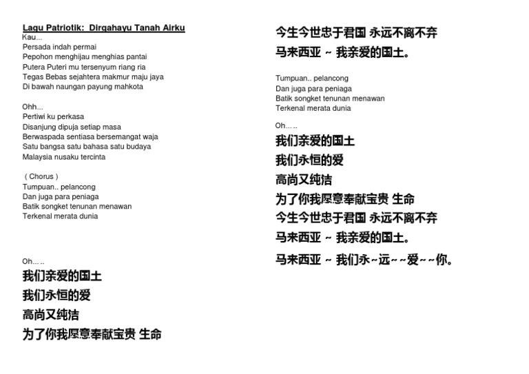 Lirik Lagu Malaysia Oh Tanah Airku Lasr Construction